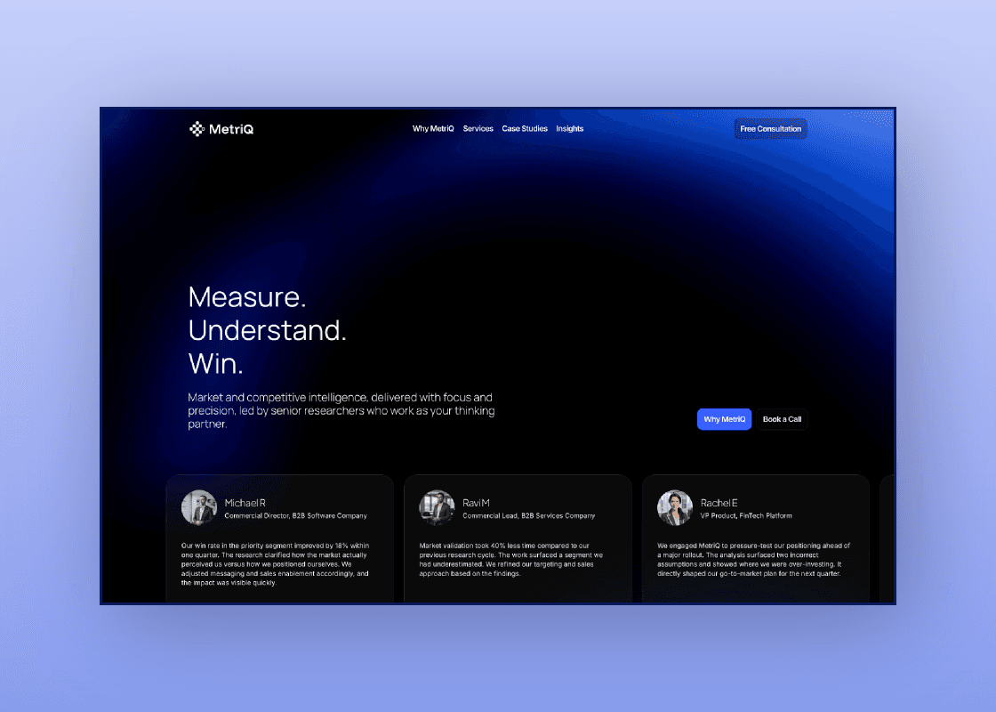 "Within 3 months of launch, inbound leads doubled. The rebrand gave us the credibility to charge what we're worth."